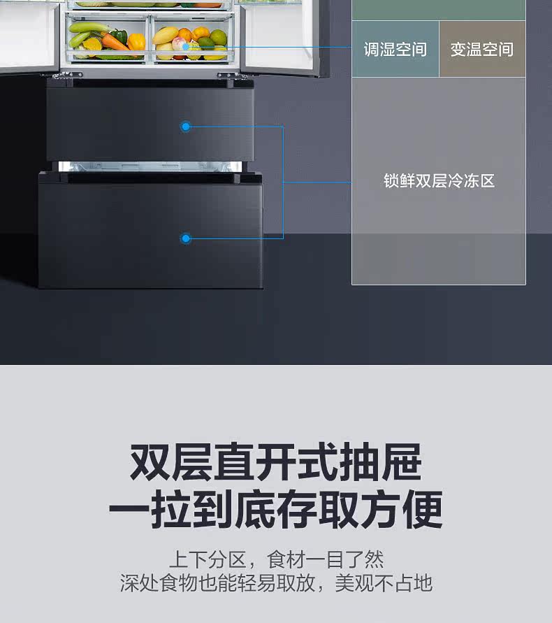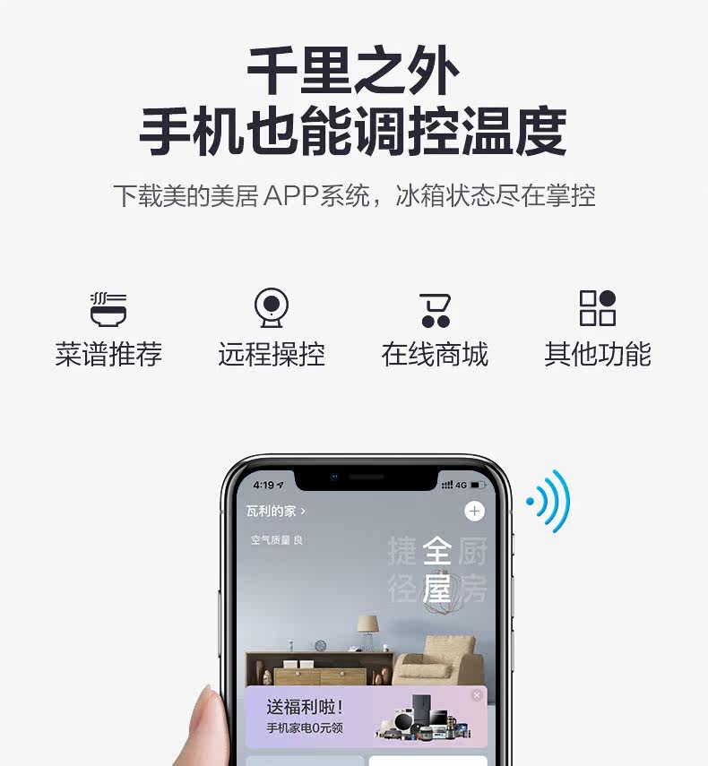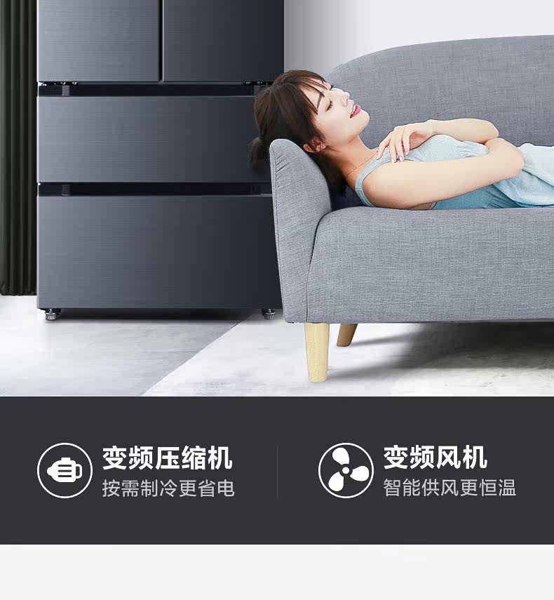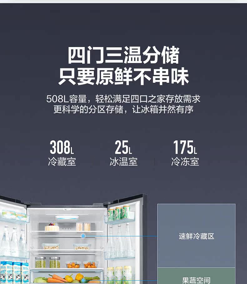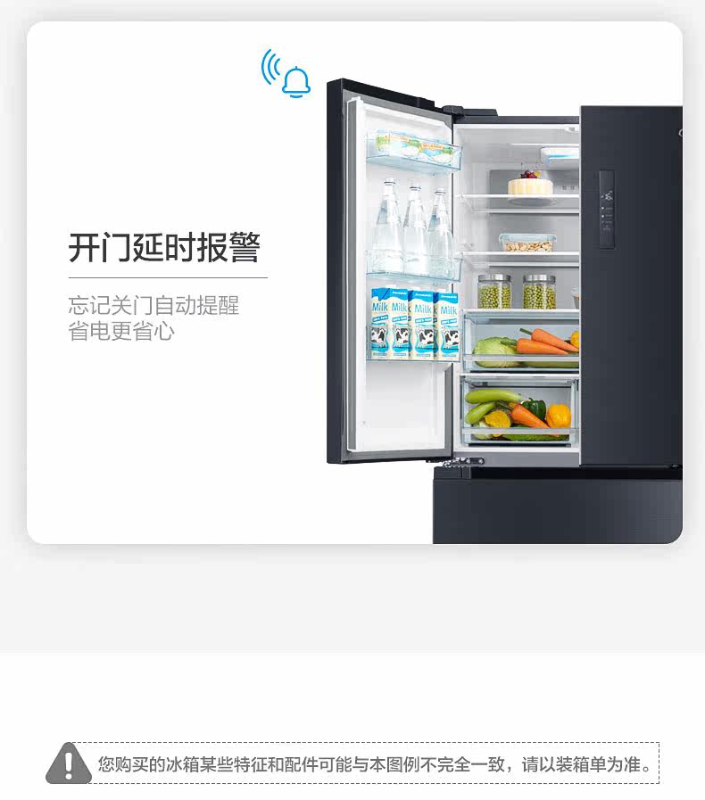 商品属性 [冰箱冰柜品牌 ] Midea/美的 [美的冰箱型号 ] BCD-508WTPZM(E) [售后服务 ] 全国联保 [产地 ] 中国大陆 [省份 ] 安徽省 [地市 ] 合肥市 [面板类型 ] VCM覆膜板 [制冷方式 ] 风冷 [颜色分类 ] 莫兰迪灰 [箱门结构 ] 多门式 [冰箱冷柜机型 ] 冷藏冷冻冰箱 [制冷控制系统 ] 电脑温控 [同城服务 ] 同城物流送货上门 [能效等级 ] 一级 [是否变频 ] 变频 [堆码层数极限 ] 3层 [毛重 ] 114kg [包装尺寸 ] 896x710x2010mm [宽×深(厚)×高 ] 833x648x1898mm [净重 ] 104kg [宽度 ] 833mm [智能类型 ] 其他智能 [最大容积 ] 508L [冷冻室容积 ] 175L [噪声 ] 38dB [耗电量 ] 0.89Kwh/24h [上市时间 ] 2019-07 [冷藏室容积 ] 308L [总容量 ] 508L [能效备案号 ] 201903-1-10813-3578994104104 [采购地 ] 中国大陆 [总容量范围 ] 501-600升 [深度 ] 648mm [高度 ] 1898mm [保修期 ] 12个月