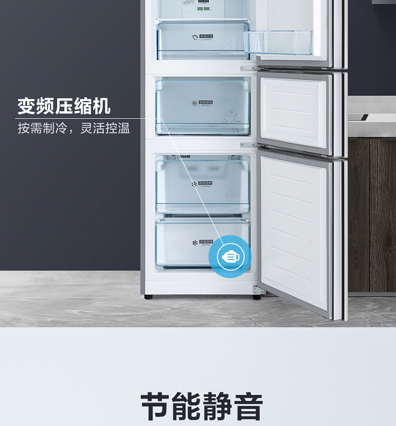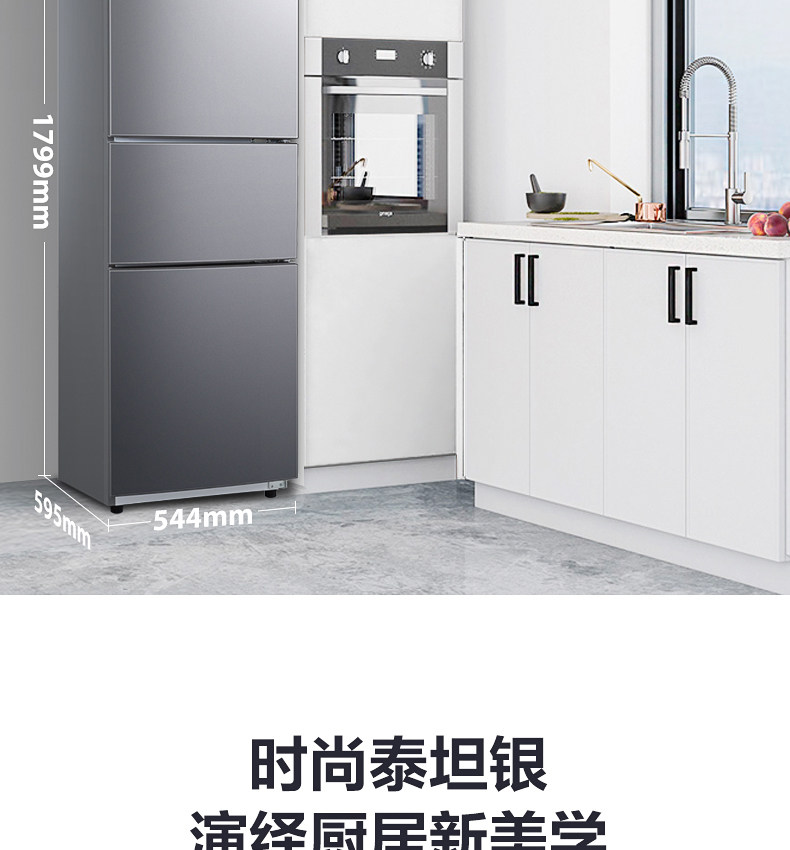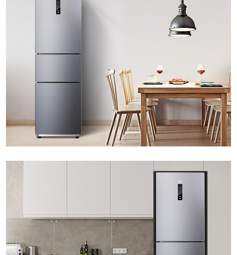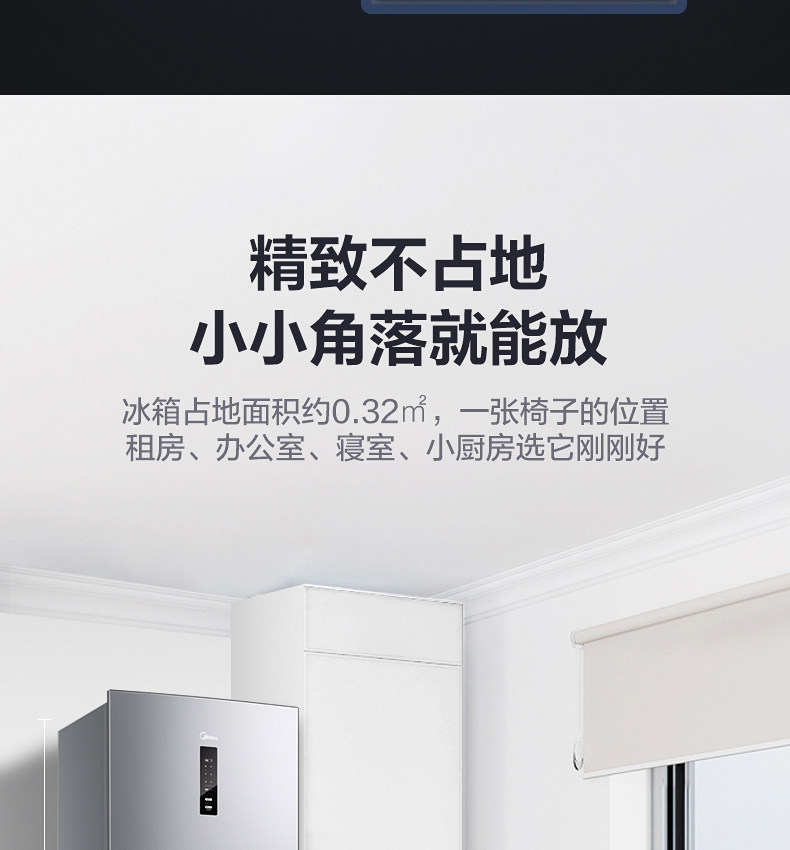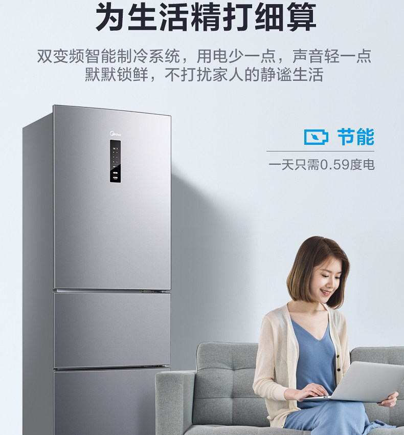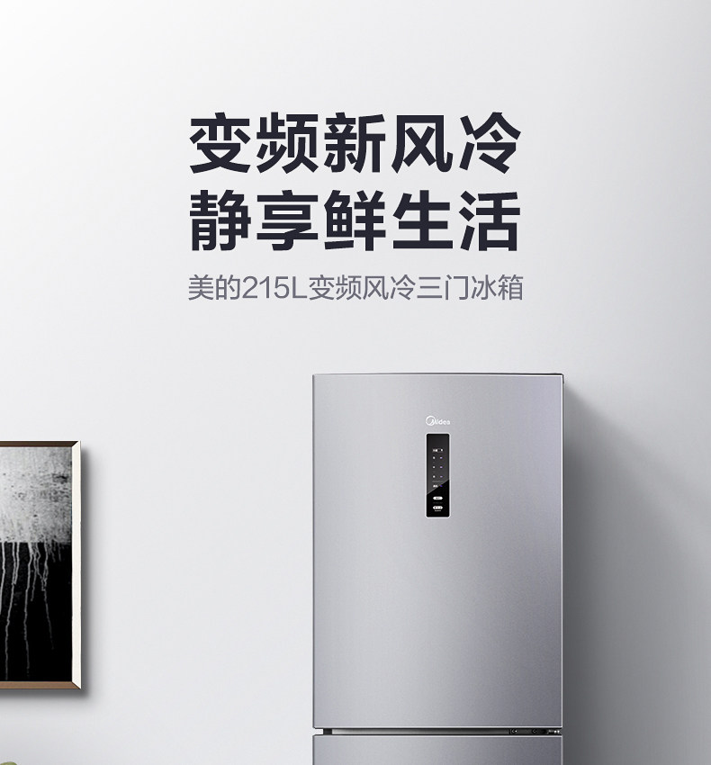 商品属性 [冰箱冰柜品牌 ] Midea/美的 [美的冰箱型号 ] BCD-215WTPM(E) [售后服务 ] 全国联保 [产地 ] 中国大陆 [省份 ] 安徽省 [地市 ] 合肥市 [面板类型 ] VCM覆膜板 [制冷方式 ] 风冷 [颜色分类 ] 泰坦银 [箱门结构 ] 三门式 [冰箱冷柜机型 ] 冷藏冷冻冰箱 [制冷控制系统 ] 电脑温控 [同城服务 ] 同城物流送货上门 [能效等级 ] 二级 [是否变频 ] 变频 [堆码层数极限 ] 3层 [毛重 ] 56kg [包装尺寸 ] 615x655x1895mm [宽×深(厚)×高 ] 544x595x1799mm [净重 ] 50kg [宽度 ] 544mm [智能类型 ] 不支持智能 [最大容积 ] 215L [冷冻室容积 ] 55L [噪声 ] 40dB [耗电量 ] 0.59Kwh/24h [上市时间 ] 2019-09 [冷藏室容积 ] 117L [总容量 ] 215L [能效备案号 ] 201908-1-10813-3935702537290 [采购地 ] 中国大陆 [总容量范围 ] 211-230升 [深度 ] 595mm [高度 ] 1799mm [保修期 ] 12个月
