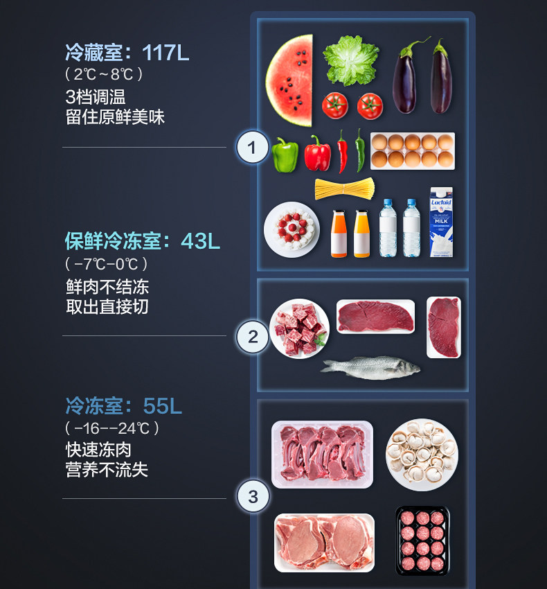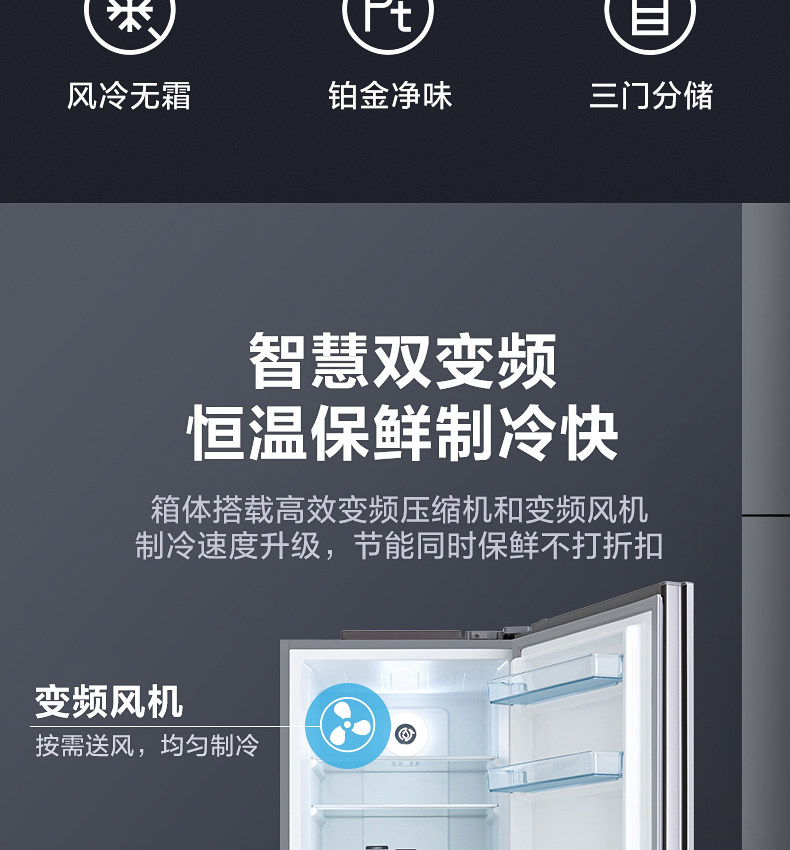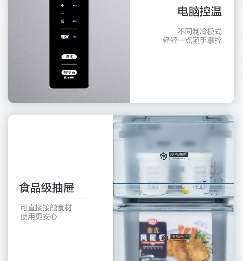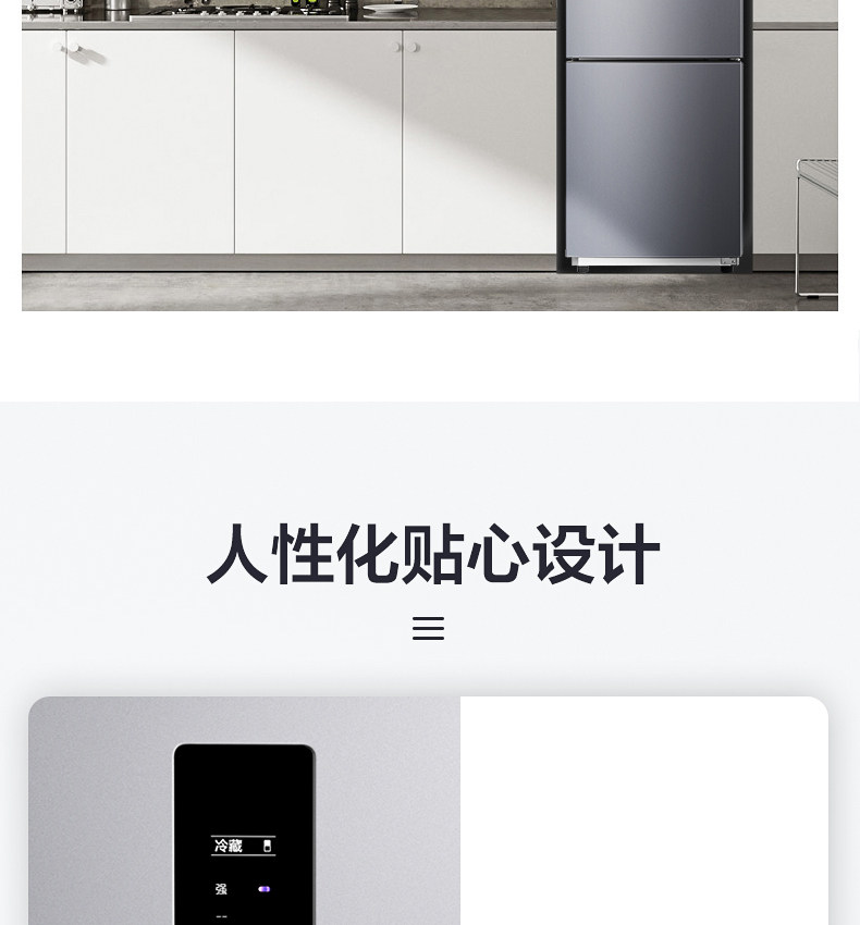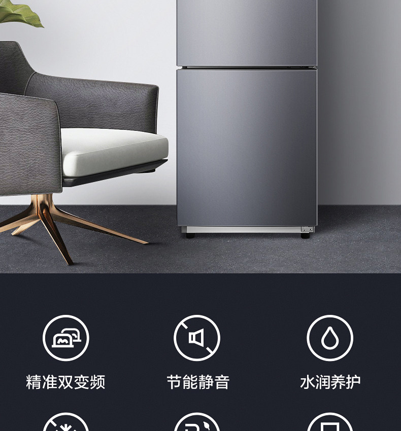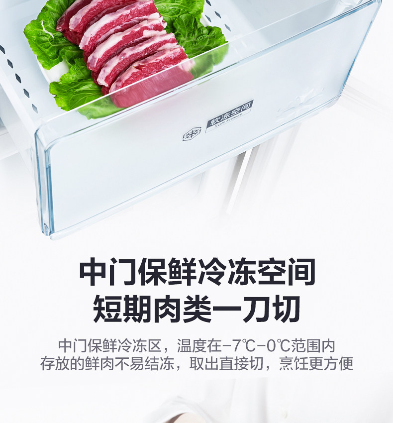 商品属性 [冰箱冰柜品牌 ] Midea/美的 [美的冰箱型号 ] BCD-215WTPM(E) [售后服务 ] 全国联保 [产地 ] 中国大陆 [省份 ] 安徽省 [地市 ] 合肥市 [面板类型 ] VCM覆膜板 [制冷方式 ] 风冷 [颜色分类 ] 泰坦银 [箱门结构 ] 三门式 [冰箱冷柜机型 ] 冷藏冷冻冰箱 [制冷控制系统 ] 电脑温控 [同城服务 ] 同城物流送货上门 [能效等级 ] 二级 [是否变频 ] 变频 [堆码层数极限 ] 3层 [毛重 ] 56kg [包装尺寸 ] 615x655x1895mm [宽×深(厚)×高 ] 544x595x1799mm [净重 ] 50kg [宽度 ] 544mm [智能类型 ] 不支持智能 [最大容积 ] 215L [冷冻室容积 ] 55L [噪声 ] 40dB [耗电量 ] 0.59Kwh/24h [上市时间 ] 2019-09 [冷藏室容积 ] 117L [总容量 ] 215L [能效备案号 ] 201908-1-10813-3935702537290 [采购地 ] 中国大陆 [总容量范围 ] 211-230升 [深度 ] 595mm [高度 ] 1799mm [保修期 ] 12个月