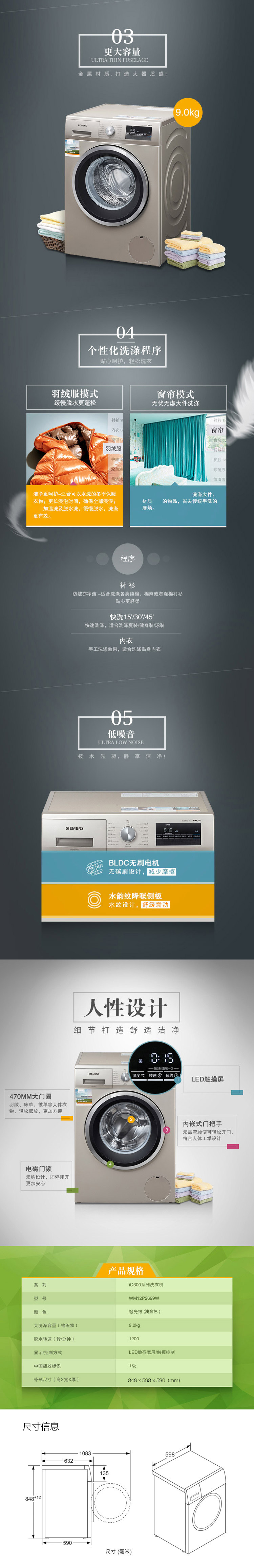 商品属性 [品牌 ] SIEMENS/西门子 [颜色分类 ] WM12P2699W